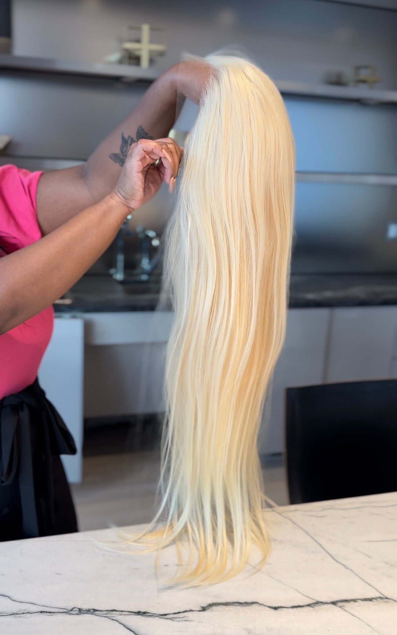 Our 613 Straight HD Lace Wigs offer a bold and vibrant blonde look that’s perfect for making a statement. The HD lace ensures a flawless hairline, while the 210% density provides a thick, luxurious feel. For a lighter option, the 5x5 closure wig delivers all the style with 180% density for comfort and natural movement.